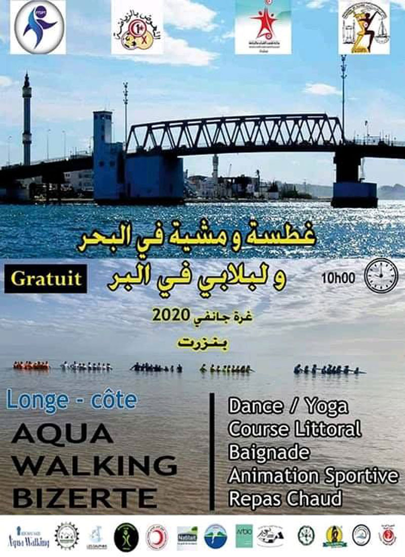 La manifestation sportive Marche sur l’eau – Aqua Walking est un grand évènement sportif et touristique à la fois qui va se dérouler le 1er Janvier 2020 devant la Maison des jeunes à Sidi Salem, Bizerte.